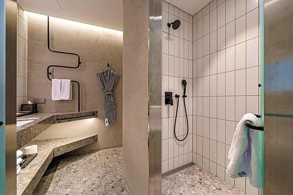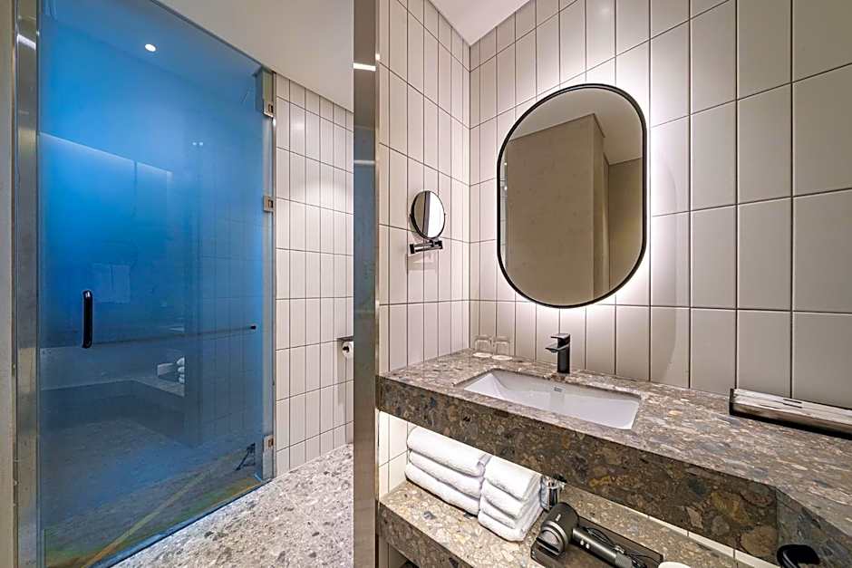 Outdoors, a dazzling infinity pool with a view takes center stage, with all-season access to soak up sunny moments or twilight reflections. Adjacent is a welcoming garden, offering a tranquil spot to take a breather between meetings or sightseeing.